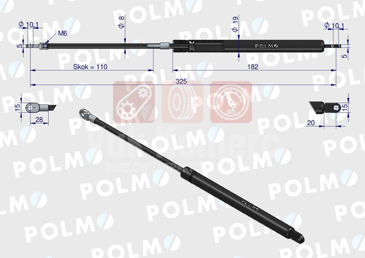 AMORTIZER ZADNJEG STAKLA KRAĆI 315 MM FI 10 ZETOR