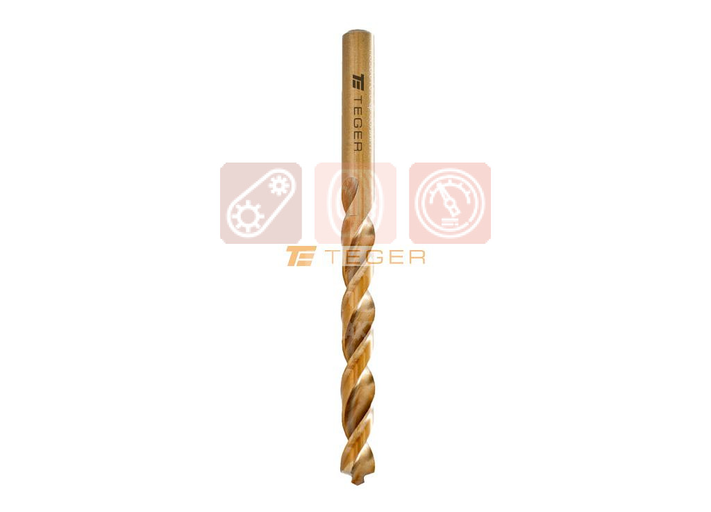 TEGER-ova burgija za kobalt metal je odlična burgija za bušenje legure i ugljeničnog čelika sa čvrstoćom do 900N/mm2. Napravljen od legure visokokvalitetnog čelika obogaćenog kobaltom (~ 6% sadržaja), što ga čini izuzetno čvrstim pri rezanju kaljenih čeličnih površina. Bušilica je dizajnirana za bušenje čelika, čelika otpornog na kiseline, nerđajućeg čelika i čelika otpornog na toplotu, gvožđa, livenog gvožđa, mesinga, nikla, drveta i plastike. Zahvaljujući posebnoj geometriji rezne ivice i pilotu koji omogućava bušenje bez zarezivanja, ova burgija je odlična za bušenje u cevima ili ovalnim oblicima. Specijalni bočni rezači omogućavaju izrezivanje kružne rupe određenog prečnika sa ravnim ivicama. Dodatni oksidni premaz na površini žljebova za strugotine jamči odlično uklanjanje kvara