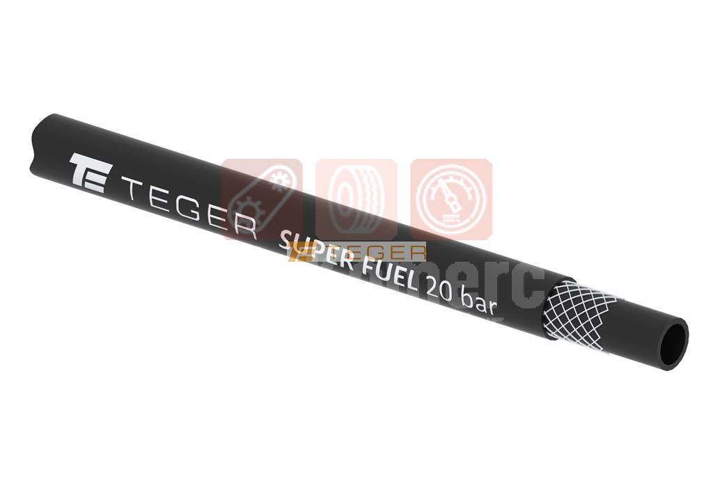 Crevo za gorivo, SUPER GORIVO - benzin, ulje, dizel - DN8 - 20 bar / 2.0 Mpa TEGER. Visokokvalitetna mešavina NBR gume otporna na ulje i gorivo. Antistatička crna sintetička guma, takođe otporna na abraziju, vremenske uslove i ozon. Pored toga, crevo ispunjava zahteve EN 1360 za hemijsku otpornost. pakovanje 20m
