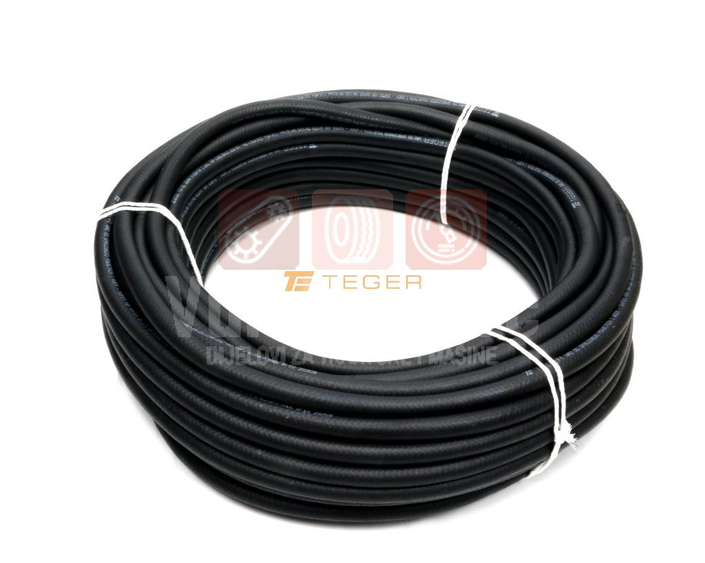 Crevo za gorivo, SUPER GORIVO - benzin, ulje, dizel - DN8 - 20 bar / 2.0 Mpa TEGER. Visokokvalitetna mešavina NBR gume otporna na ulje i gorivo. Antistatička crna sintetička guma, takođe otporna na abraziju, vremenske uslove i ozon. Pored toga, crevo ispunjava zahteve EN 1360 za hemijsku otpornost. pakovanje 50m