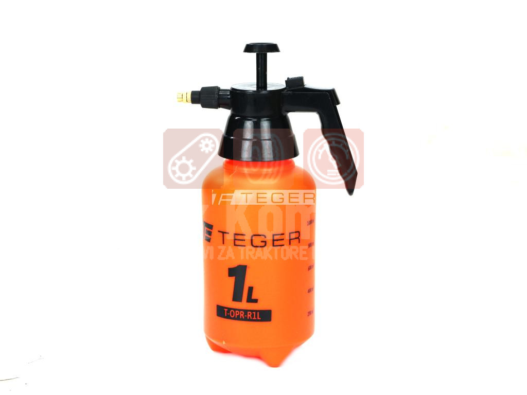 TEGER prskalica sa kapacitetom rezervoara 1l. Savršen je za rad u kući i vrtu. Idealan za prskanje i đubrenje biljaka u saksiji, kao i za prskanje drveća i grmlja. TEGER prskalica pod pritiskom je opremljena mesinganom mlaznicom koja omogućava da se mlaz vode beskonačno mijenja iz kontinuiranog toka u finu maglu. Ima mehanizam za zaključavanje za kontinuirani rad bez držanja okidača. Kontejner od robusne plastike sa odštampanom praktičnom skalom kapaciteta.