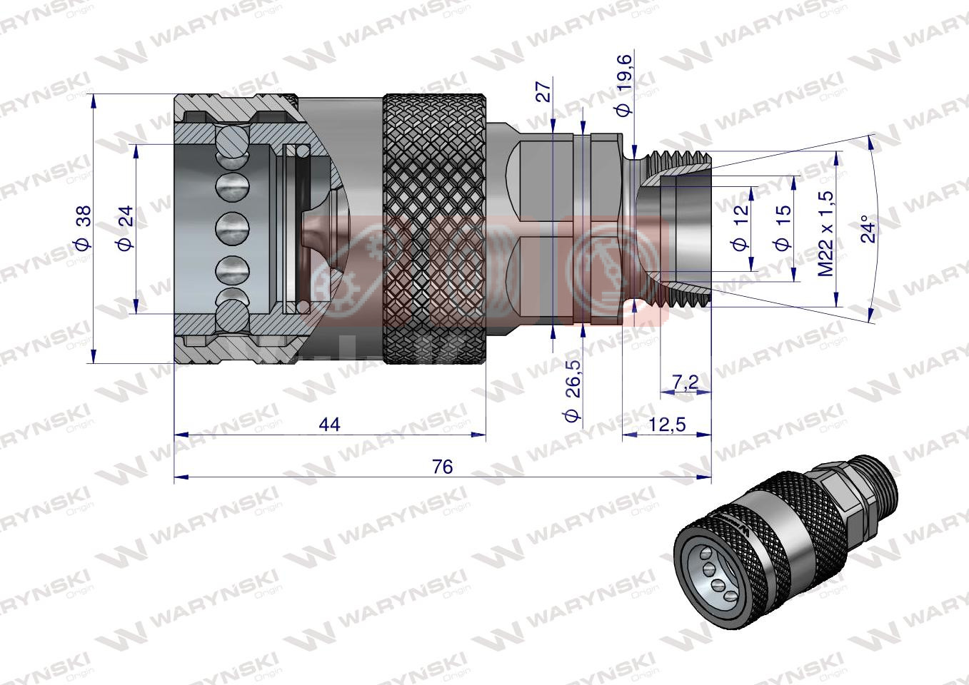 VENTIL KIPE ŽENSKI DIO SA REDUCIROM M22X1.5 DUŽI WARYNSKI OEM
